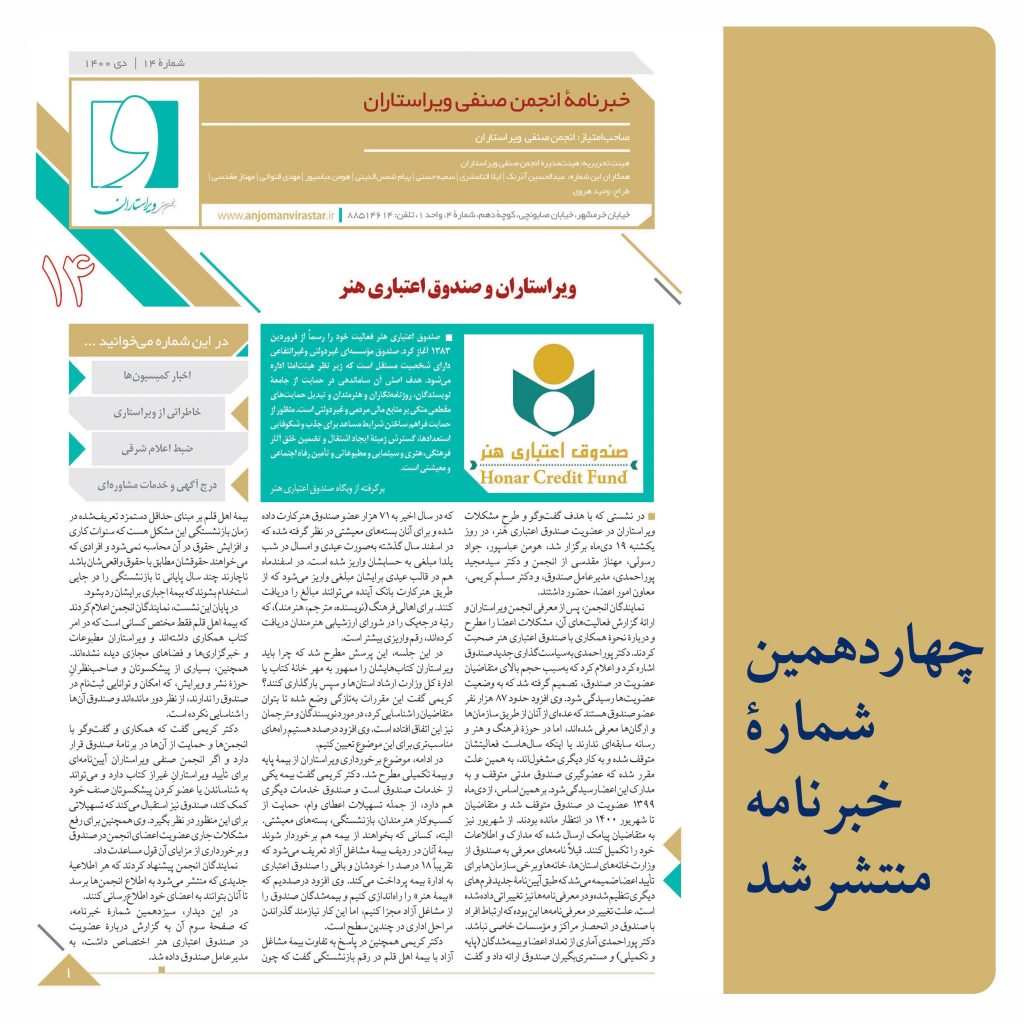 چهاردهمین خبرنامۀ انجمن صنفی ویراستاران