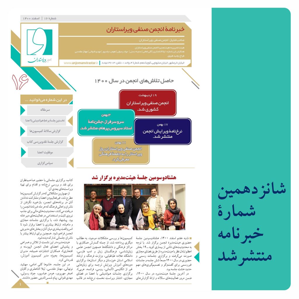 شانزدهمین خبرنامۀ انجمن صنفی ویراستاران