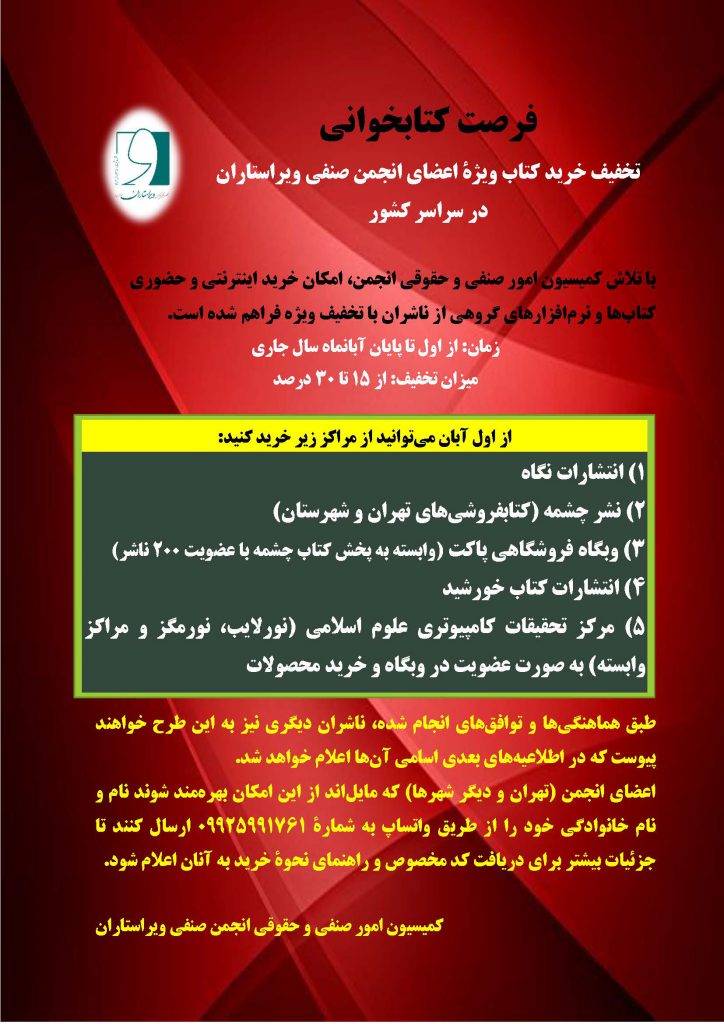 تخفیف خرید کتاب ویژۀ اعضای انجمن صنفی ویراستاران