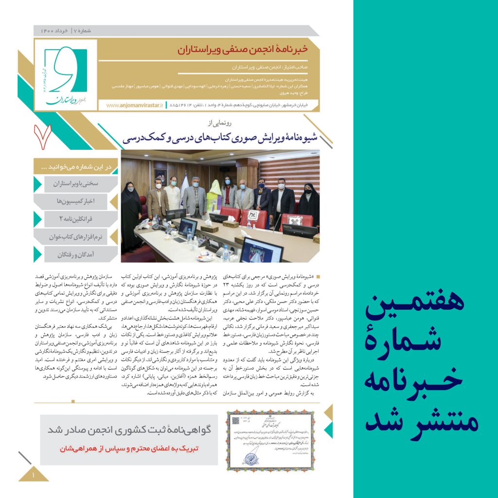 هفتمین شمارۀ خبرنامۀ انجمن صنفی ویراستاران